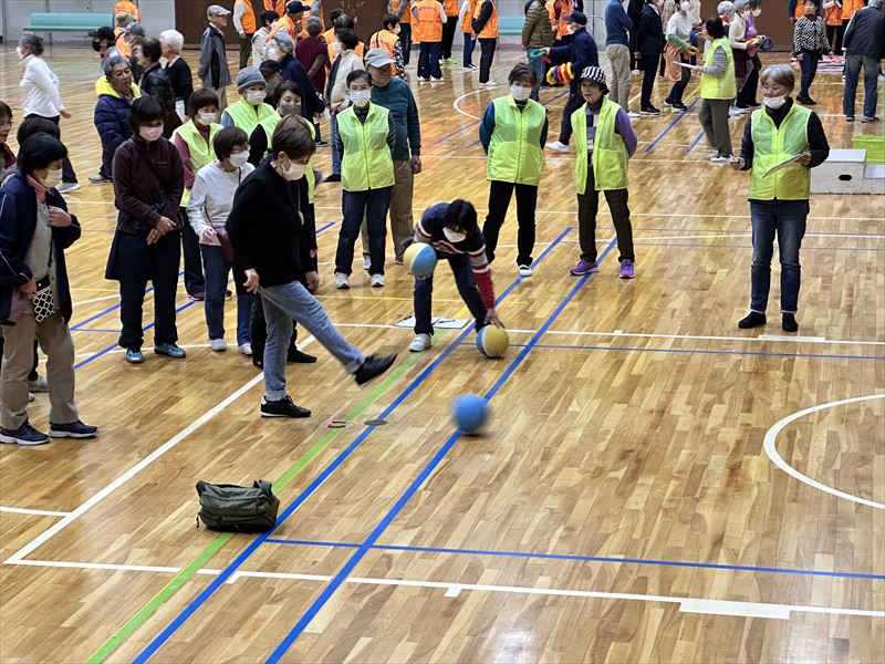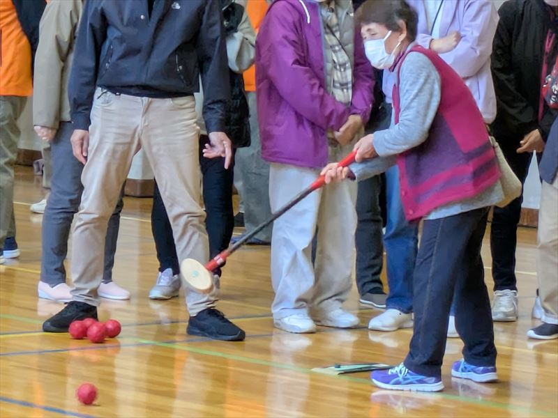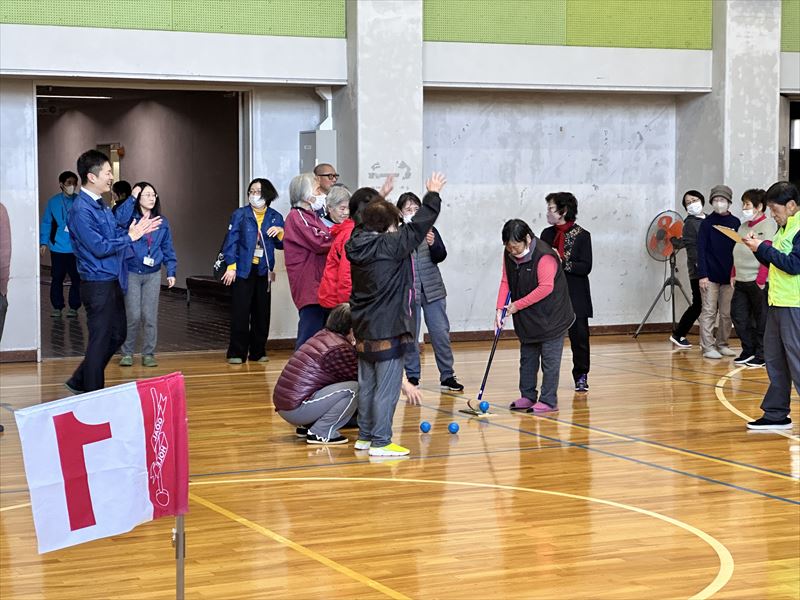 会場のあちこちで歓声や笑い声が響き、「頑張れ!」という応援の声も飛び交い、終始にぎやかな雰囲気の中でプレーが行われました。中には杖をつきながら挑戦される方もおられ、周囲から大きな声援が送られていました。