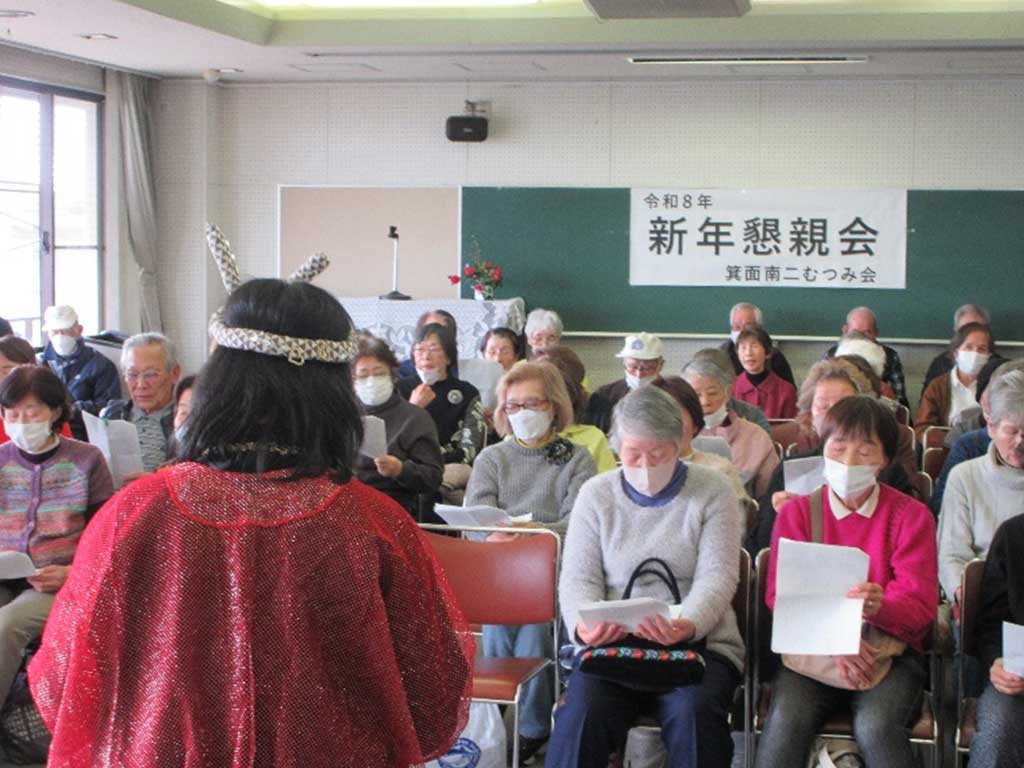 令和8年1月24日(土)、桜ヶ丘ヒューマンズプラザ大会議室にて、箕面南2むつみ会の新年懇親会を開催しました。来賓お二方を含む76名が参加し、新しい年の始まりを笑顔で祝いました。