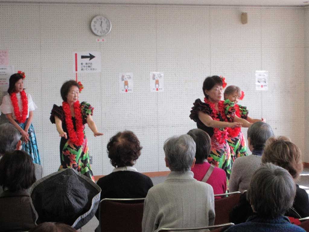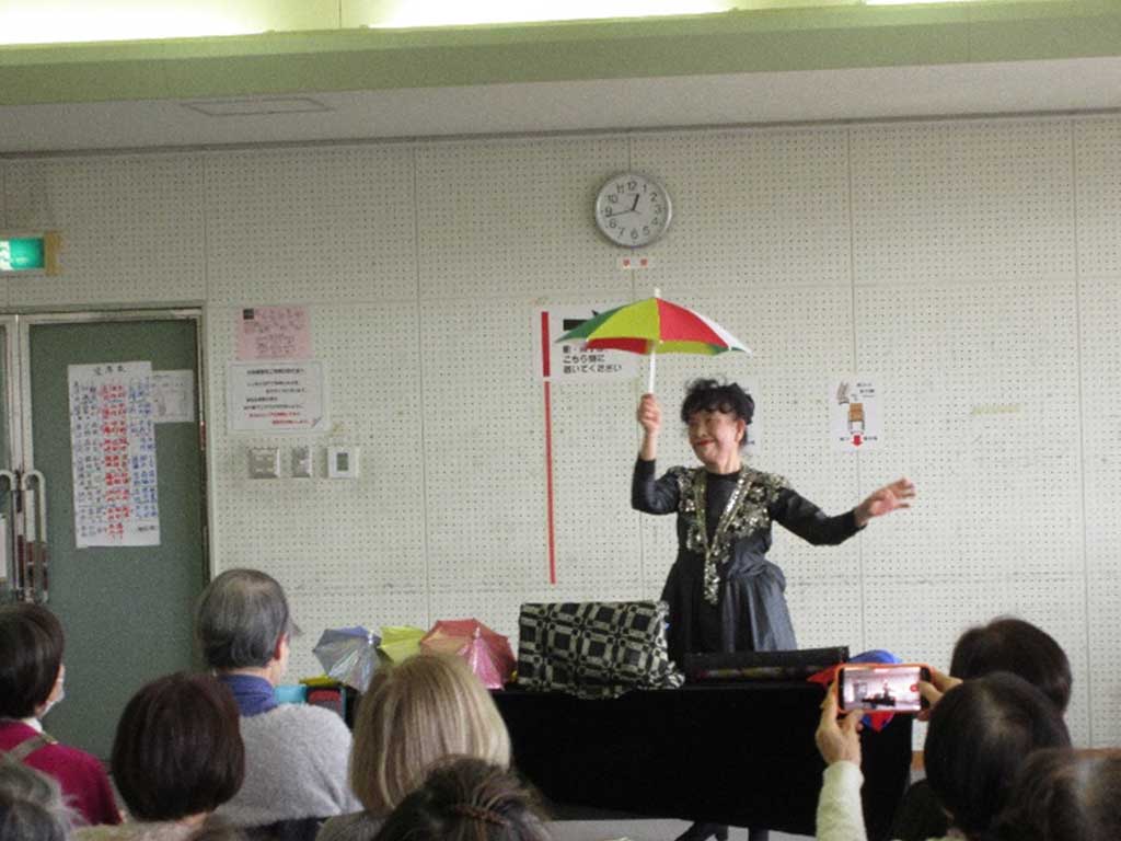 続いて、同好会によるフラダンスや民謡踊り、さらに会員による手品の披露もあり、拍手と歓声が絶えませんでした。