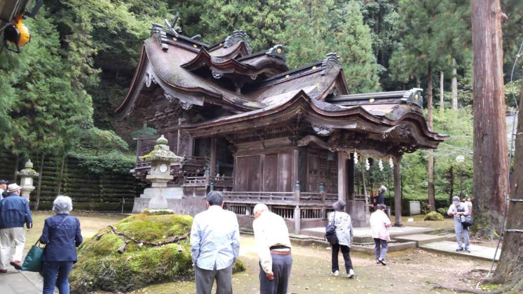 初日は日本一複雑な屋根を持つ和紙生誕地岡本神社・大瀧神社を訪れ、日ごろなじみのある千円札や一万円札もこの地が原点だそうです。