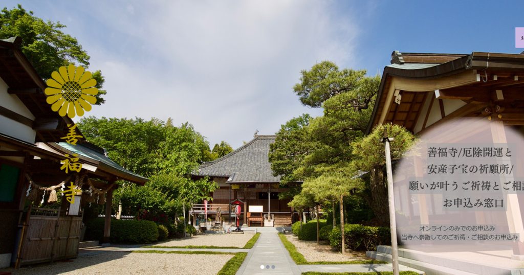 大阪府箕面市にある「歓喜山 善福寺」は、現代の人々の悩みや願いに寄り添う祈祷寺院です。厄除け、家内安全、病気平癒、交通安全など、人生のさまざまな節目や不安に対し、真心を込めてご祈祷を行っています。特に、家族や子どもを思う気持ちに応える「子... -