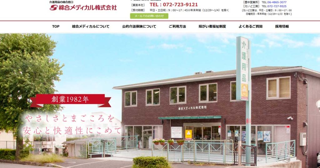 綜合メディカル株式会社は、1982年の創業以来、高齢化社会の到来を見据え、高齢者施設・市町村福祉・在宅福祉といった分野へ着実に業容を拡大し、堅実な基盤を築いてまいりました。私どもは、高齢者施設への備品供給、介護用品展示ショールームの開設、そして介護用品レンタルを通じ、地域福祉の発展に多少なりとも寄与できたと自負しております。