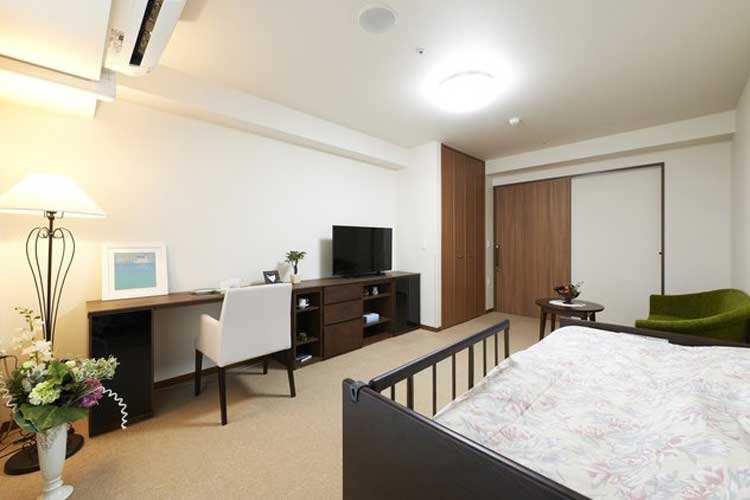 当施設では、業界トップクラスとなる約25.16㎡のゆとりある介護居室をご用意しております。お身体の状況に合わせて家具や生活動線を自在に変更でき、車いすや歩行器をご利用の方も安心してお過ごしいただけます。