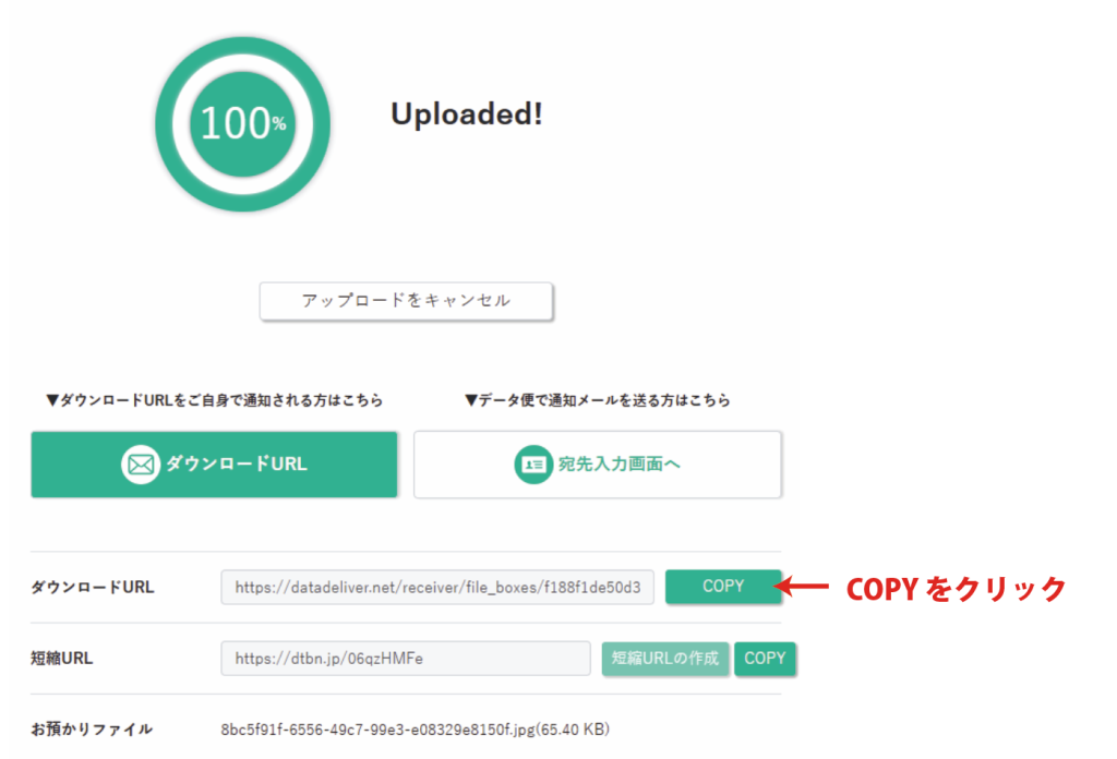 その為、その倉庫の住所となるURL、または鍵となるパスワードを、受けてに連絡する必要があります。