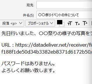 上記のボタンをクリックしてメールを立ち上げ、コピーしたURLを貼り付けます。